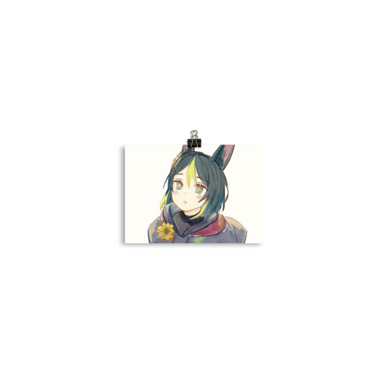 Illustration of Tighnari from Genshin Impact, printed with multicolor, water-based inkjet printing technique that yields brilliant prints to brighten up any room.